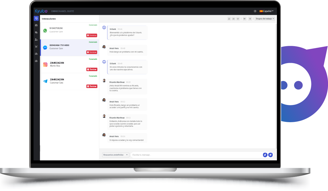 Maneja todas las interacciones de tus clientes en canales digitales en un único escritorio.